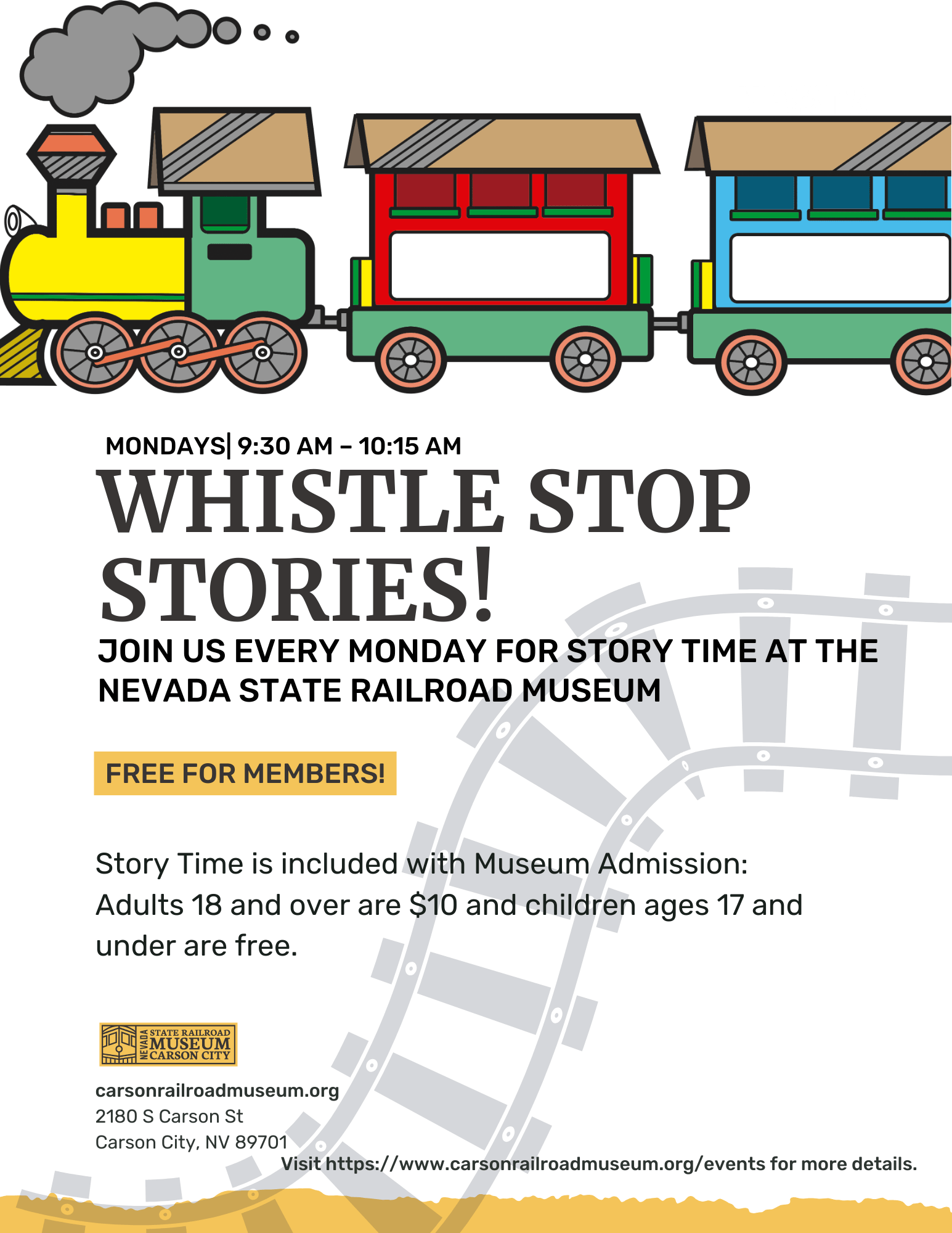 Whistle Stop Stories is the Nevada State Railroad Museum’s weekly story time. Every Monday, at 9:30 a.m., we will be reading two stories followed by an activity and/or craft.