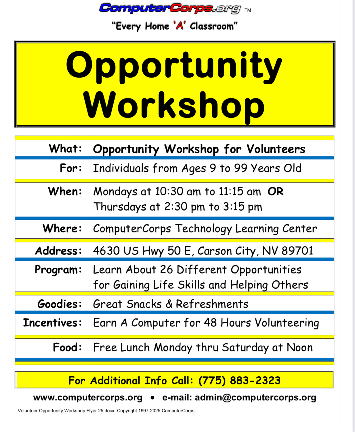 December 8 @ 10:30 am – 11:30 am Computer Corps offers Opportunity Workshop for VolunteersComputer Corps offers Opportunity Workshop for Volunteers - MON8