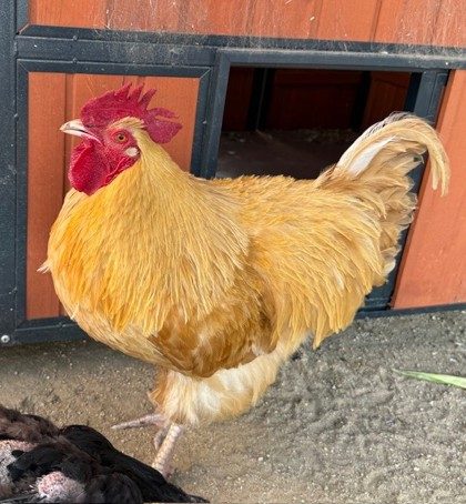 While he hasn’t fully bonded with his current coop-mates, he could thrive in a setting where he has time to adjust and get to know his new flock.